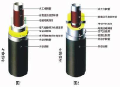 鋼套鋼蒸氣復(fù)合保溫管適用于輸送2.5MPa、350℃以下的蒸汽或其他介質(zhì),該產(chǎn)品用鋼管做外防護(hù)層,具有強(qiáng)度高,不易損壞,施工檢修簡便,使用壽命長的優(yōu)點(diǎn)。鋼套鋼蒸汽保溫管保溫結(jié)構(gòu)依據(jù)滑動方式的不同分為以下兩類(見附圖): 1、內(nèi)滑動式:保溫結(jié)構(gòu)由工作鋼管、硅酸鋁、減阻層、微孔硅酸鈣、隔熱層、不銹鋼緊固鋼帶、鋁箔反射層、聚氨酯保溫層、外套鋼管、外防腐層組成。 2、外滑動式:保溫結(jié)構(gòu)由工作鋼管、玻璃棉保溫隔熱層、鋁箔反射層、不銹鋼緊固鋼帶、滑動導(dǎo)向支架、空氣保溫層、外護(hù)鋼管、外防腐層組成。